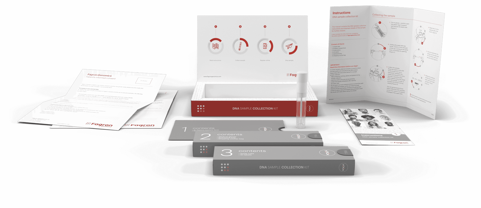 Neem met speeksel een eenvoudig DNA-monster. Vul de digitale vragenlijst en het toestemmingsformulier in en stuur de test terug via de bijgeleverde envelop (gewoon via de brievenbus).